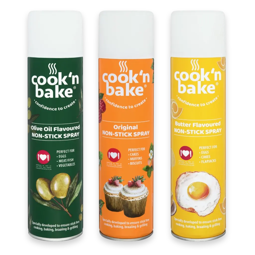 Experience the difference effortless cooking makes with Cook ‘n Bake® Non-Stick Sprays. Our innovative aerosol solutions are designed to provide a superior non-stick surface, ensuring perfect food release and incredibly easy cleanup for all your culinary adventures. Whether you’re baking delicate pastries, pan-frying savoury dishes, or roasting vegetables, our range of non-stick sprays offers reliable performance and added convenience.